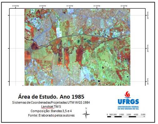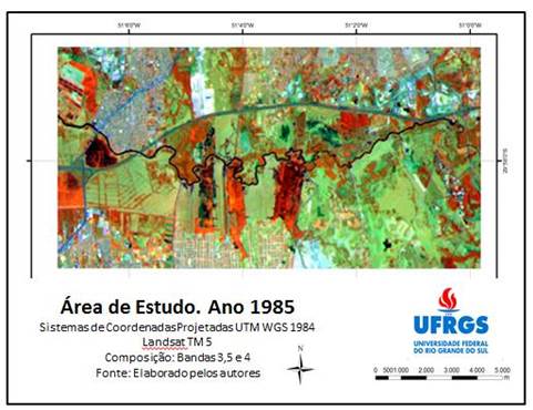 - Composição das bandas espectrais 3, 5 e 4. Ano: 1985