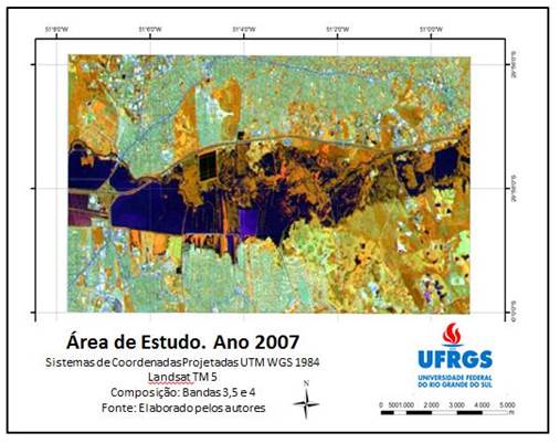 - Composição das bandas espectrais 3, 5 e 4. Ano: 2007